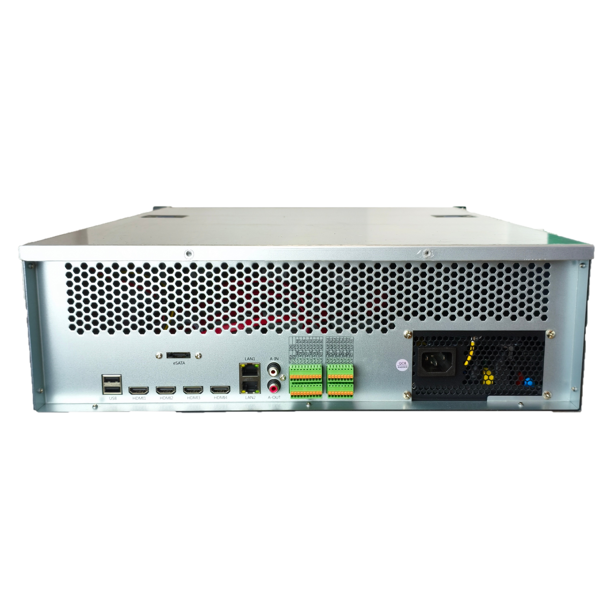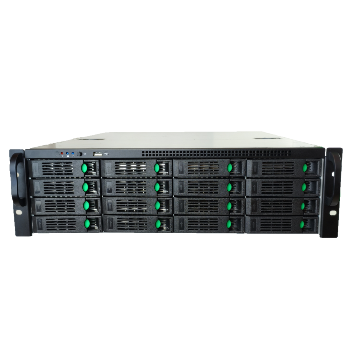 Для хранения видеоархива в регистраторе выделено место под установку 16 жестких дисков HDD SATA, кроме того, возможна установка внешнего HDD eSATA. Максимальная экономия пространства на дисках, а также экономия трафика и снижение нагрузки на канал связи достигается посредством высокоэффективного формата видеосжатия Н.265+(S.265).