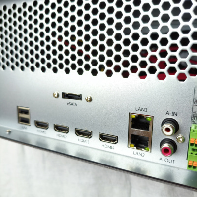 При подключении двух мониторов (HDMI разъемы, изображение дублируется), одновременный предпросмотр на экране возможен 64-х каналов, вторая часть 64-х каналов переключается вкладкой в интерфейсе.